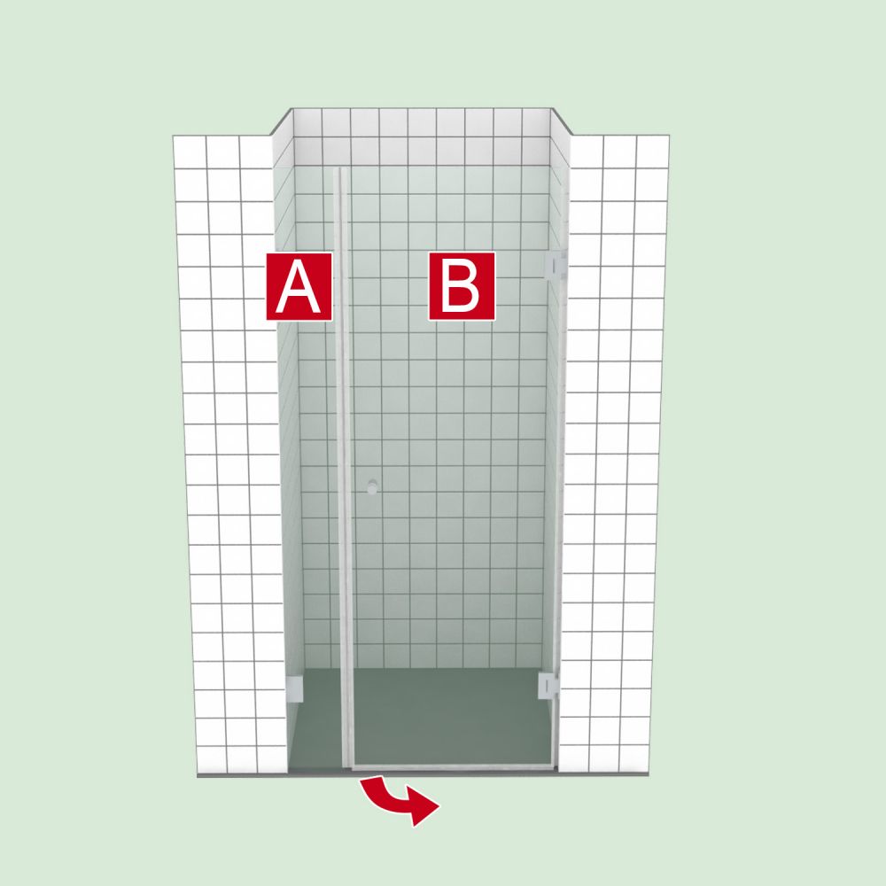 Für die Bestellung der Duschkabine sind Flächenangaben erforderlich. Diese Flächen sind in der Duschkabinen-Ansicht mit einem weiß-roten Großbuchstaben (A, ...) gekennzeichnet.