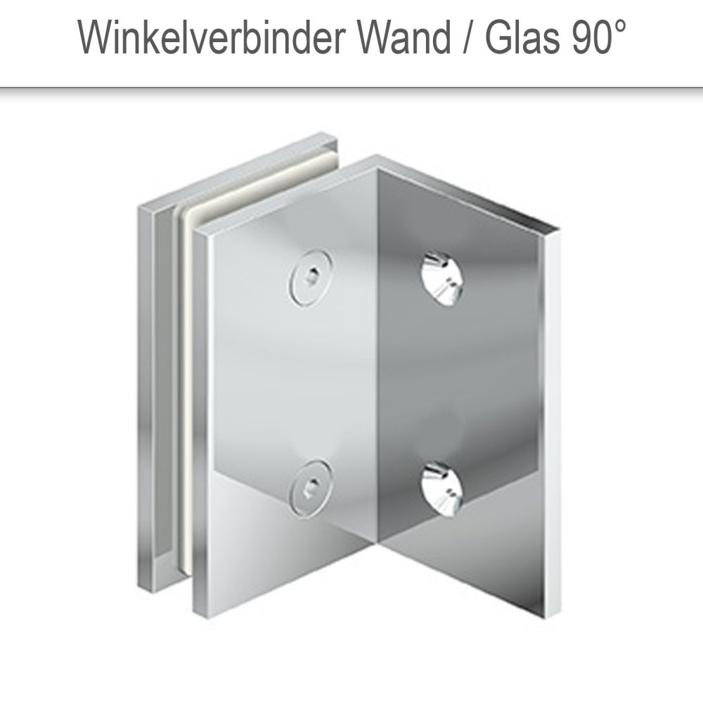 • 2x Winkelverbinder Wand/Glas 90°, Größe (B x H) 56/56 x 90 mm, Material: Voll-Messing, glanzverchromt